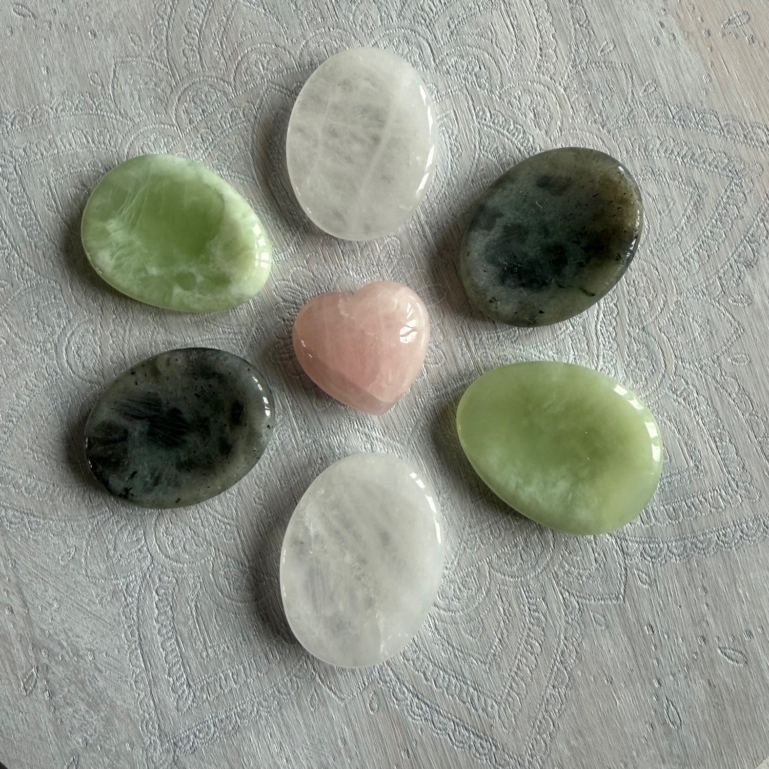 Je kunt kiezen uit bergkristal, labradoriet of serpentijn.
