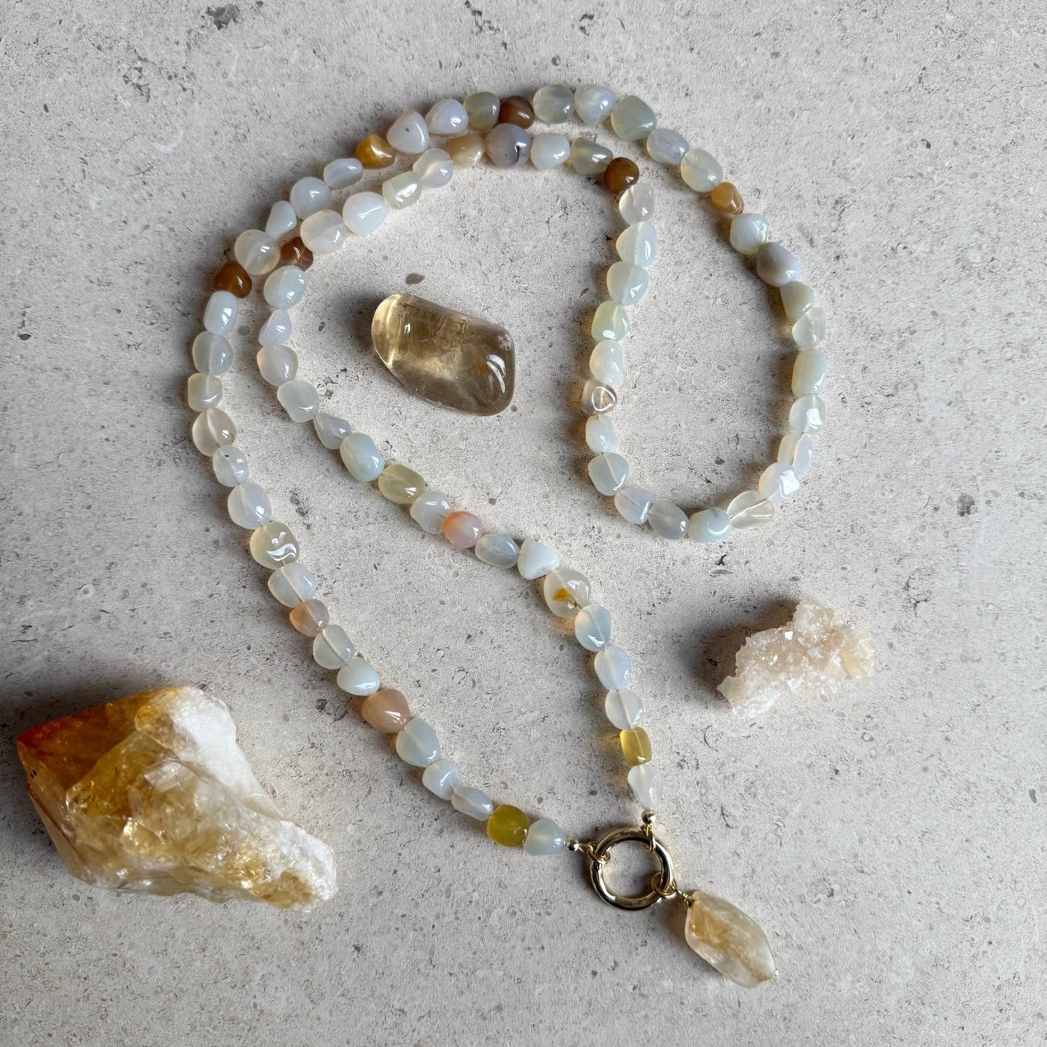 De edelsteen kralen zijn zorgvuldig en op gevoel uitgezocht en in mooie combinaties verwerkt. Voor de sluitingen en de details maak ik gebruik van gold filled, sterling zilver en soms ook stainless steel materiaal. Dit kun je teruglezen in de beschrijving van het sieraad.
