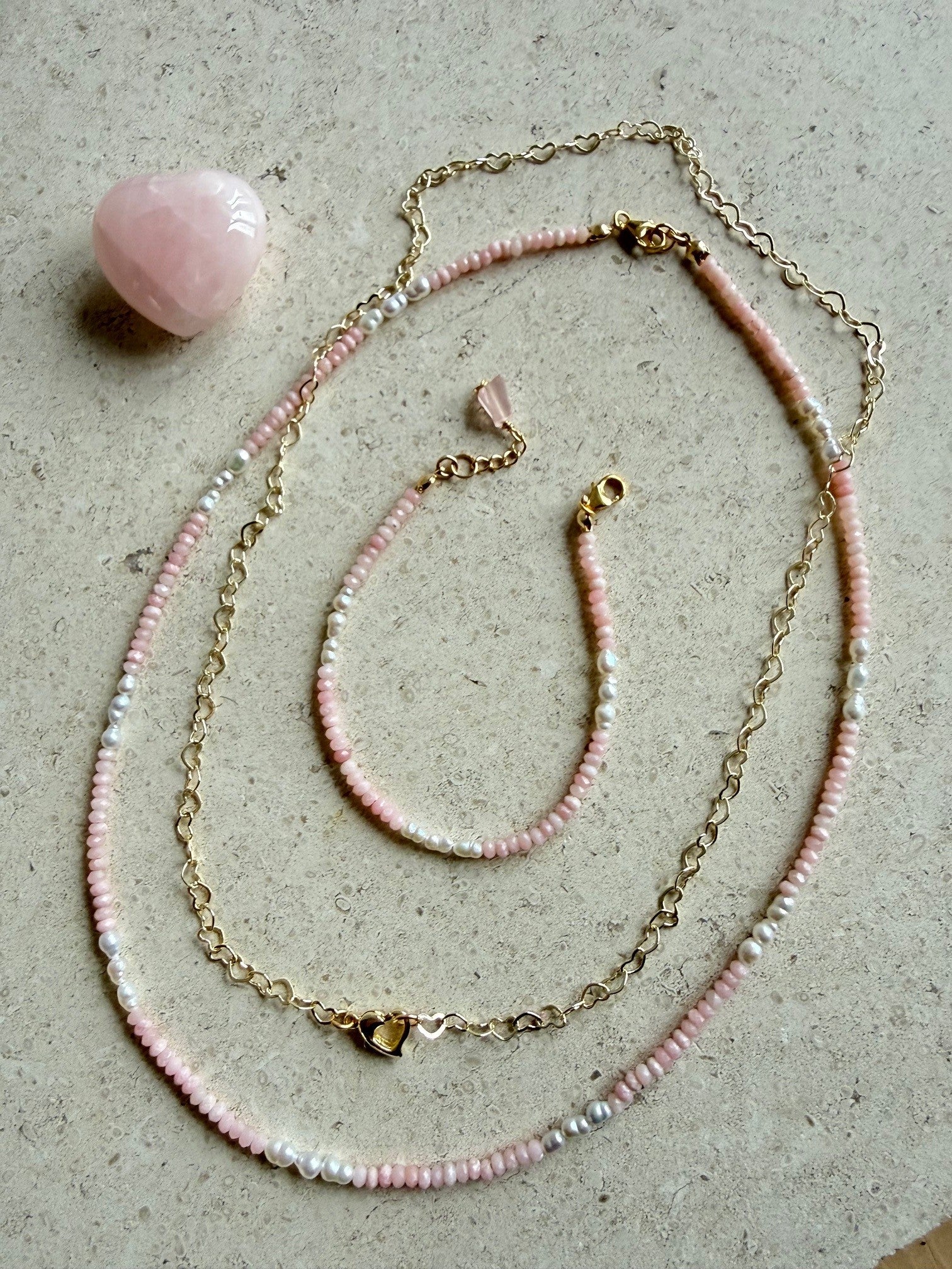 Armbandje van roze opaal en zoetwaterparels - ROZALIA