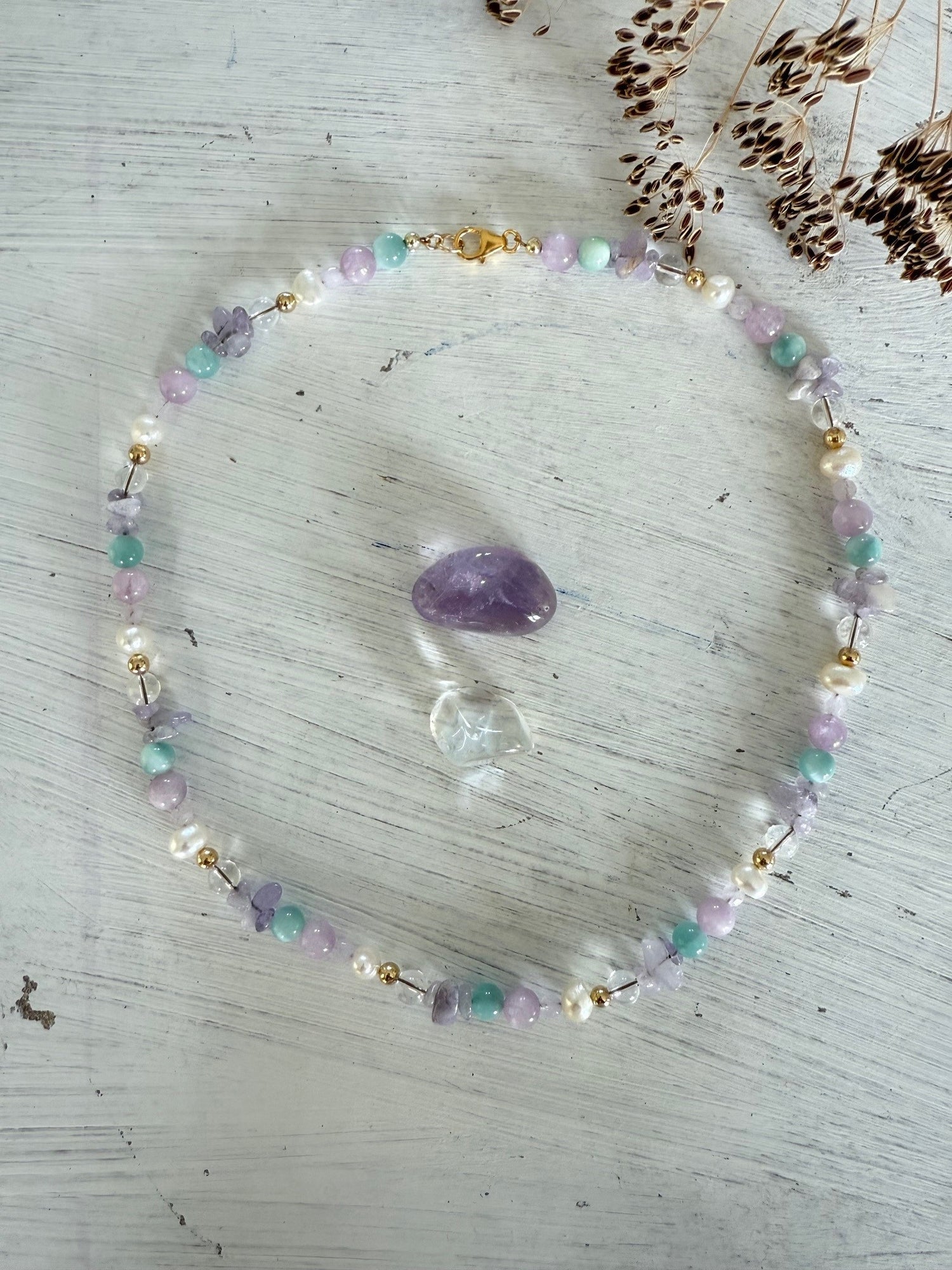 De edelsteen kralen zijn zorgvuldig en op gevoel uitgezocht en in mooie combinaties verwerkt. Voor de sluitingen en de details maak ik gebruik van gold filled, sterling zilver en soms ook stainless steel materiaal. Dit kun je teruglezen in de beschrijving van het sieraad.