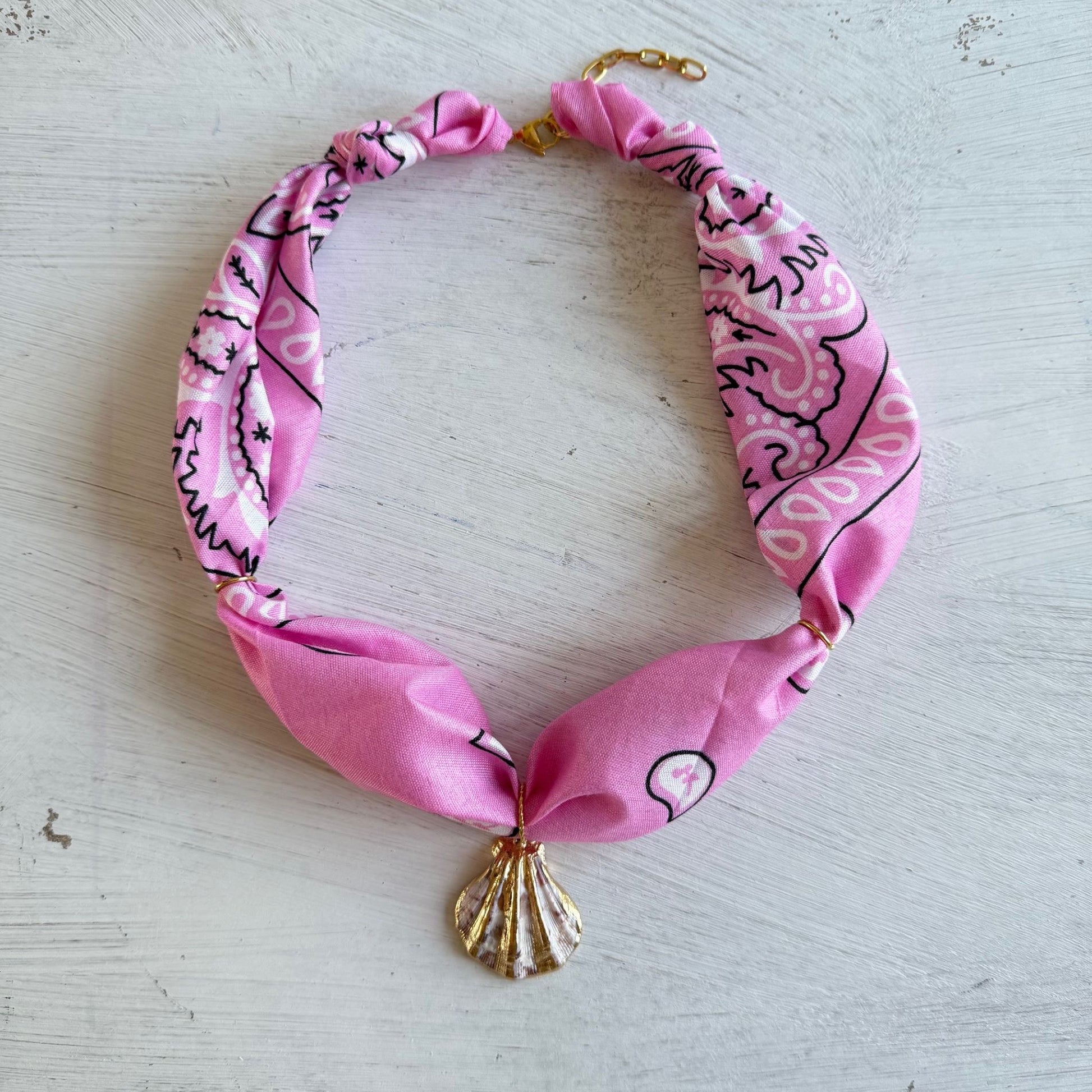 Bohemian bandana ketting met St. Jacobsschelp hanger