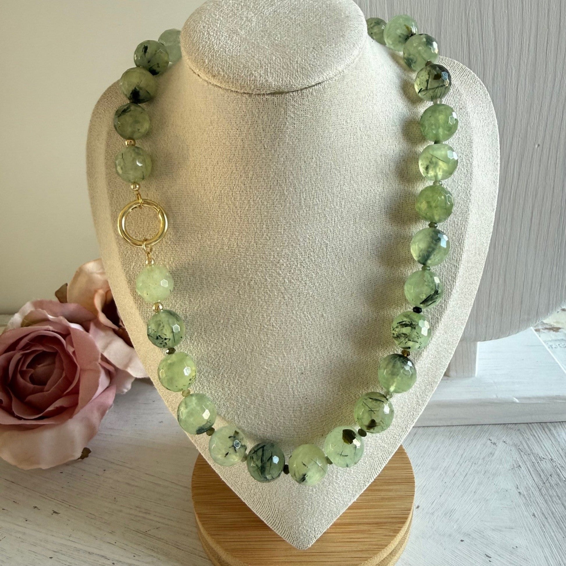 Edelsteen ketting van prehniet en toermalijn - PRESLYN
