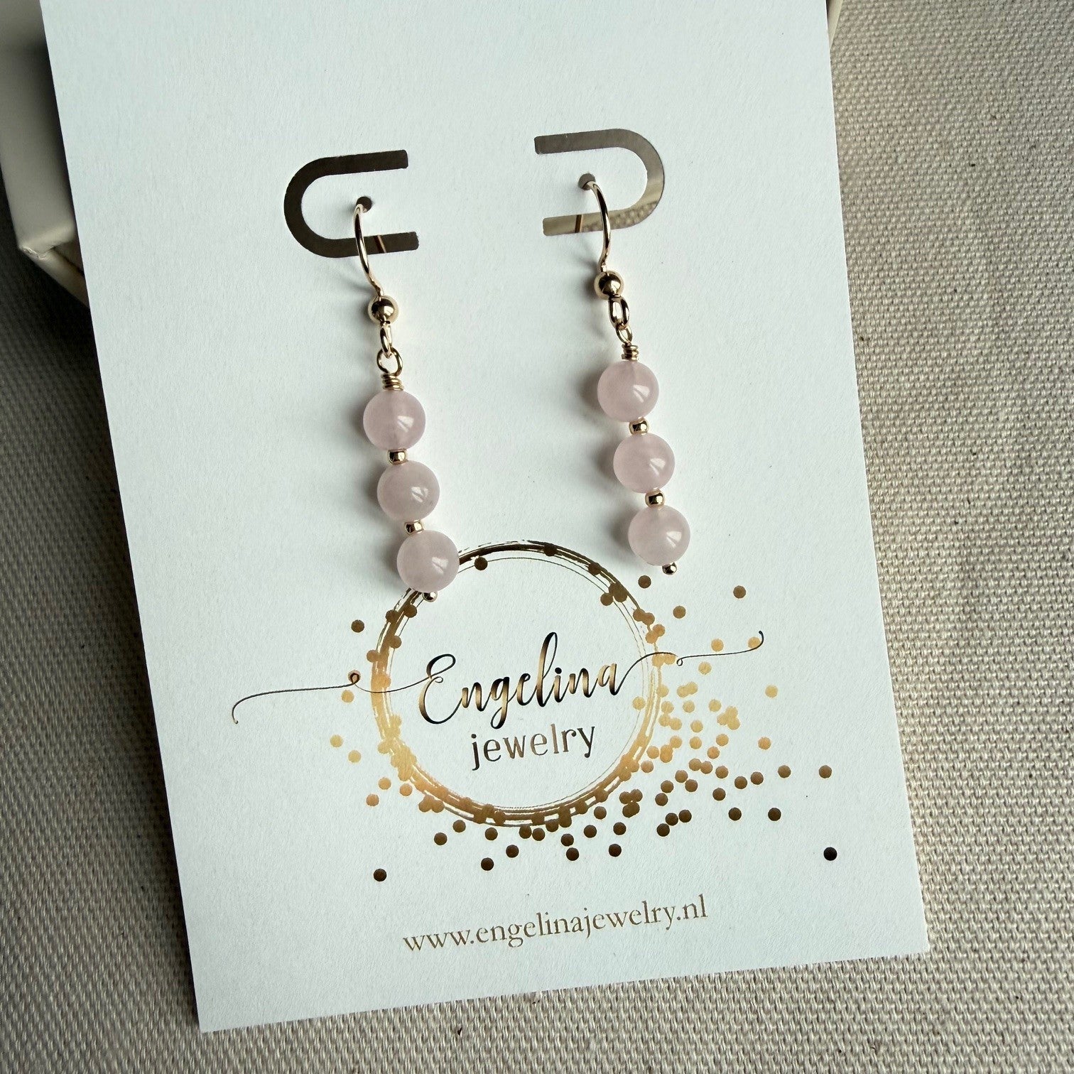 Gold filled oorbellen met rozenkwarts kralen