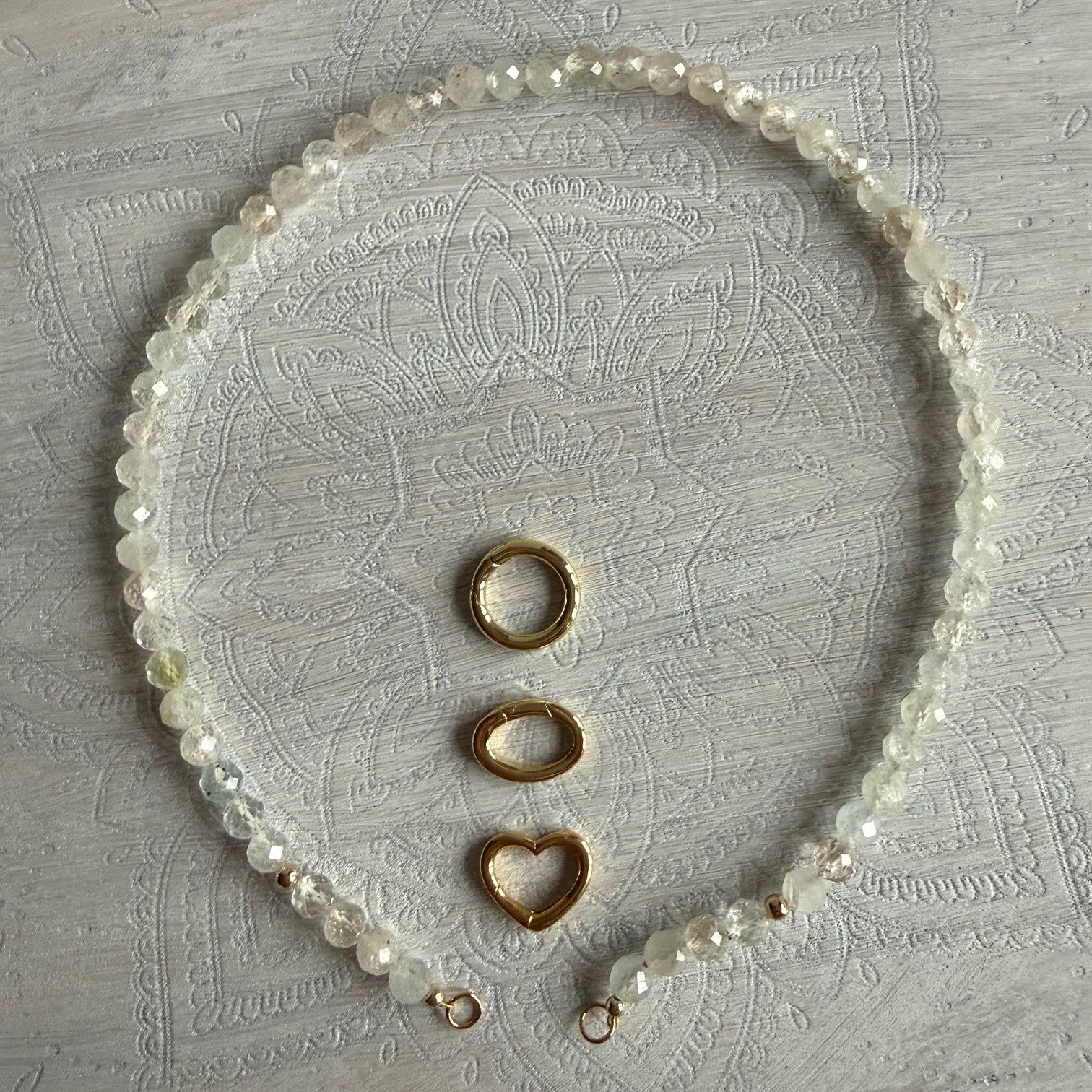 De ketting is geregen op gecoat draad en heeft open einden. Deze kunnen worden verbonden met een connector. Deze is niet bi de prijs inbegrepen en kun je hier bestellen.