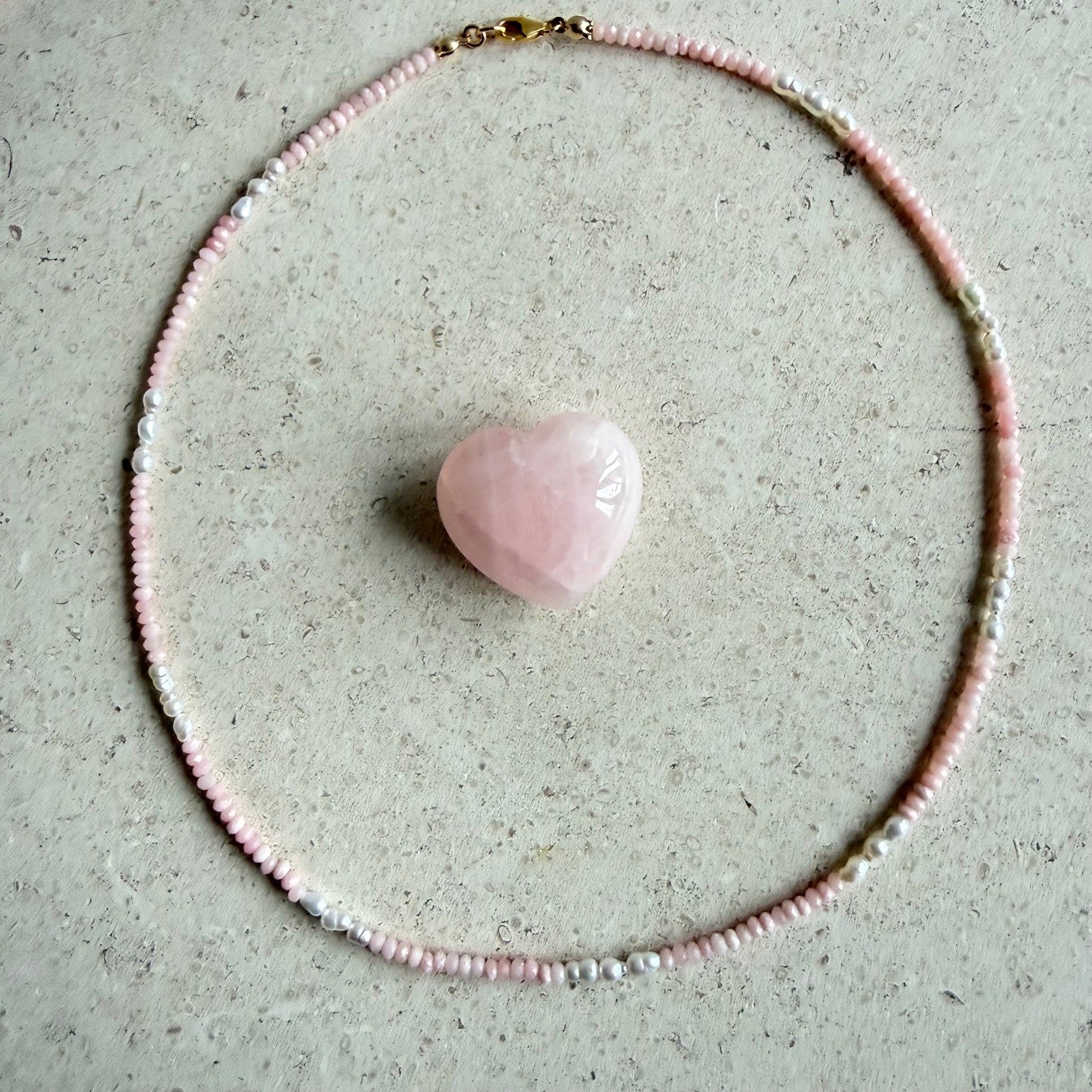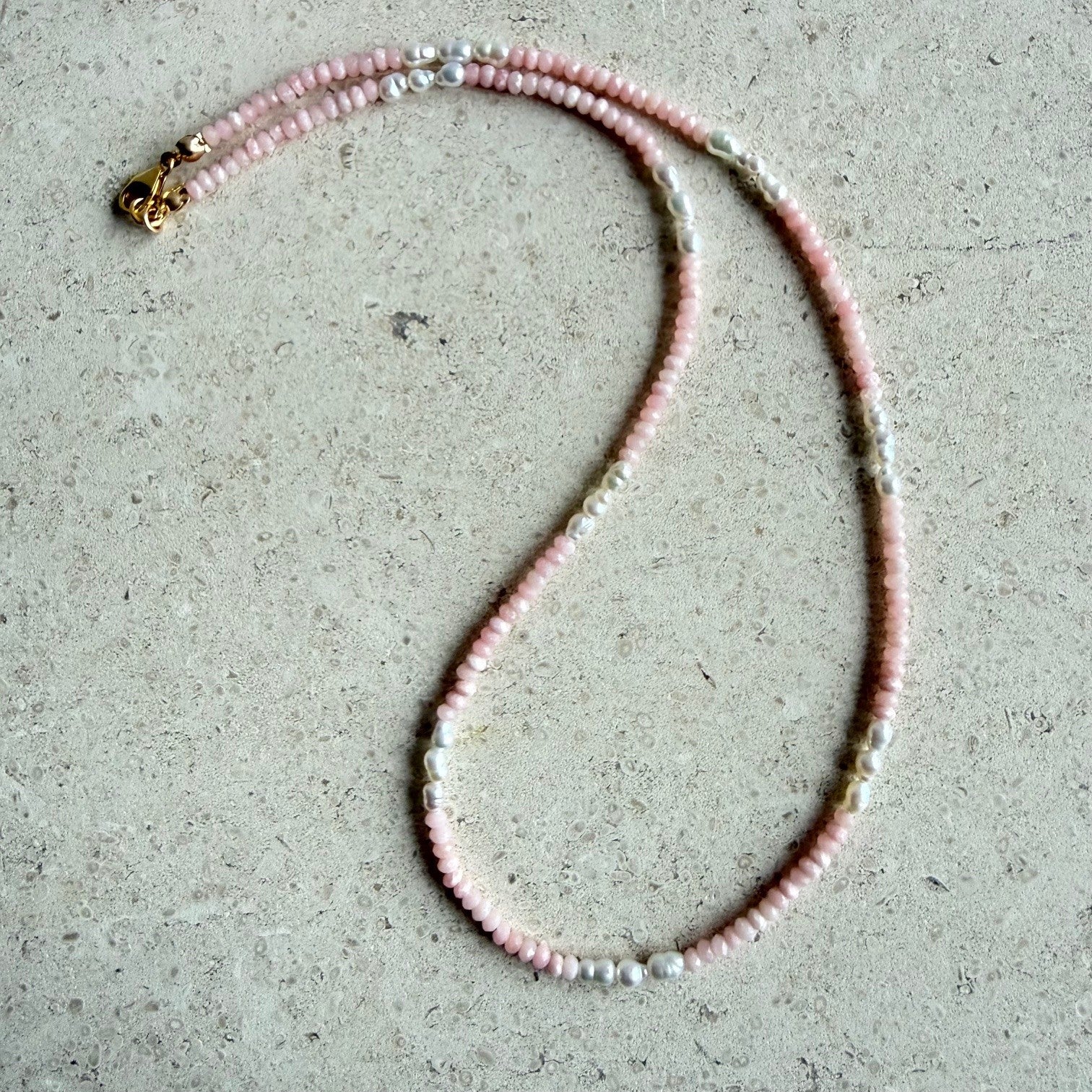 Kettinkje van roze opaal en zoetwaterpareltjes - ROZALIA