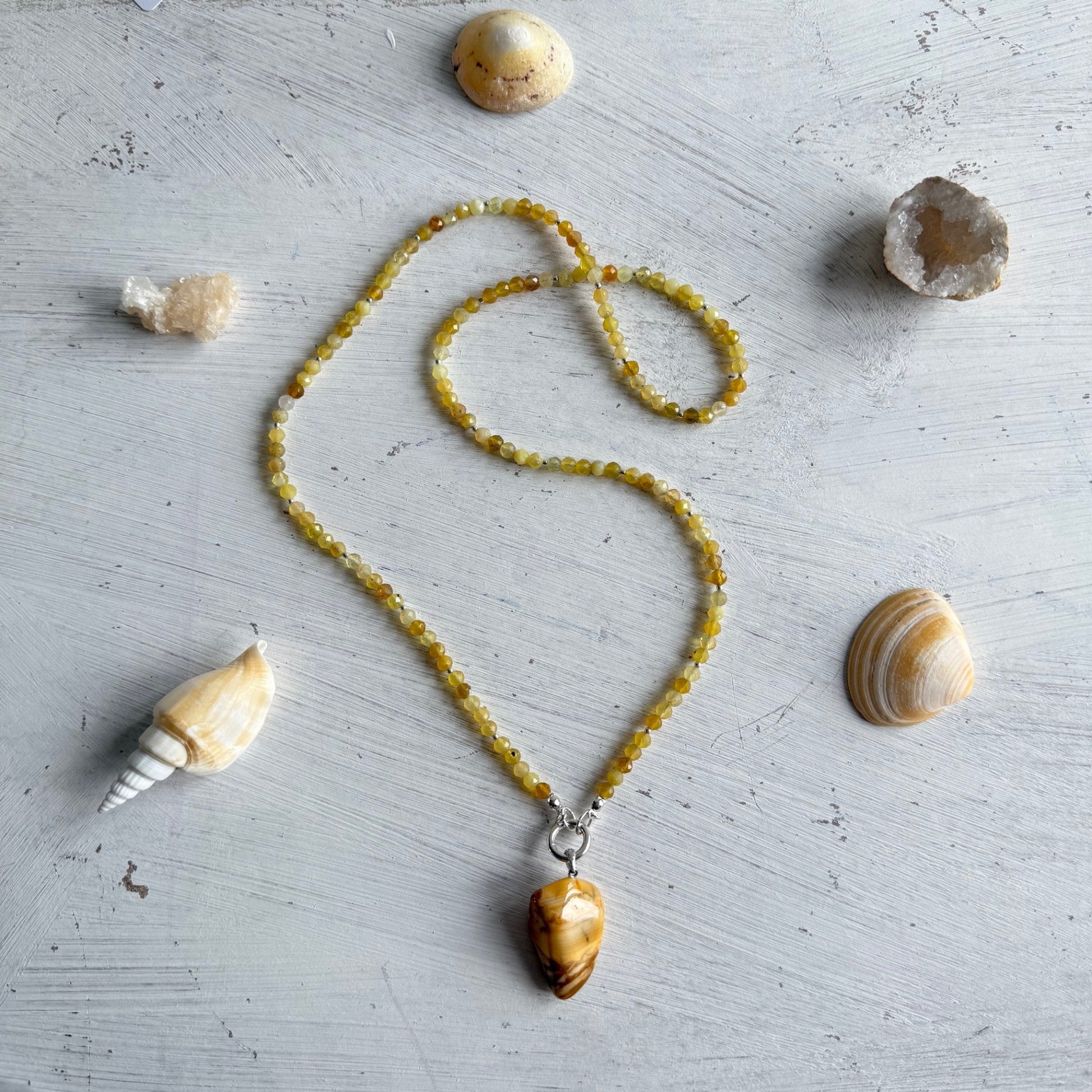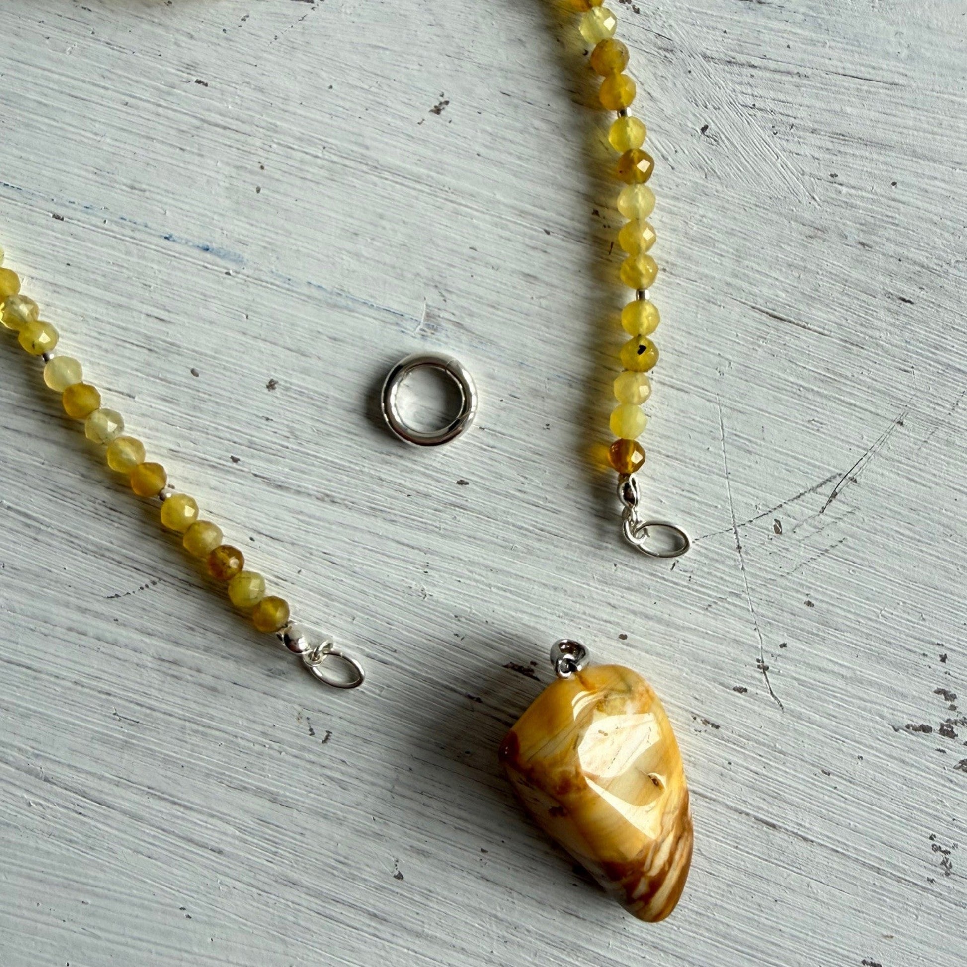 Lange ketting van gele opaal met jaspis bedel - JOALI