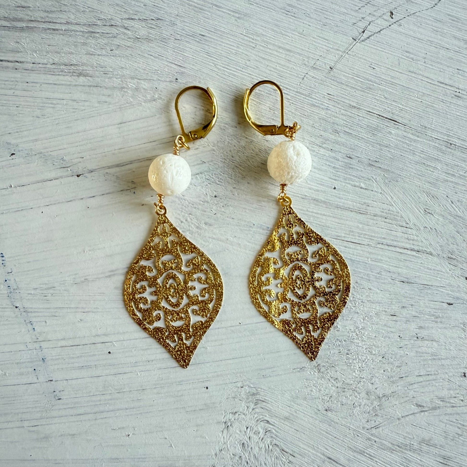 Aan sluitbare haakjes hangt een kraal van wit koraal met een druppelvormige mandela