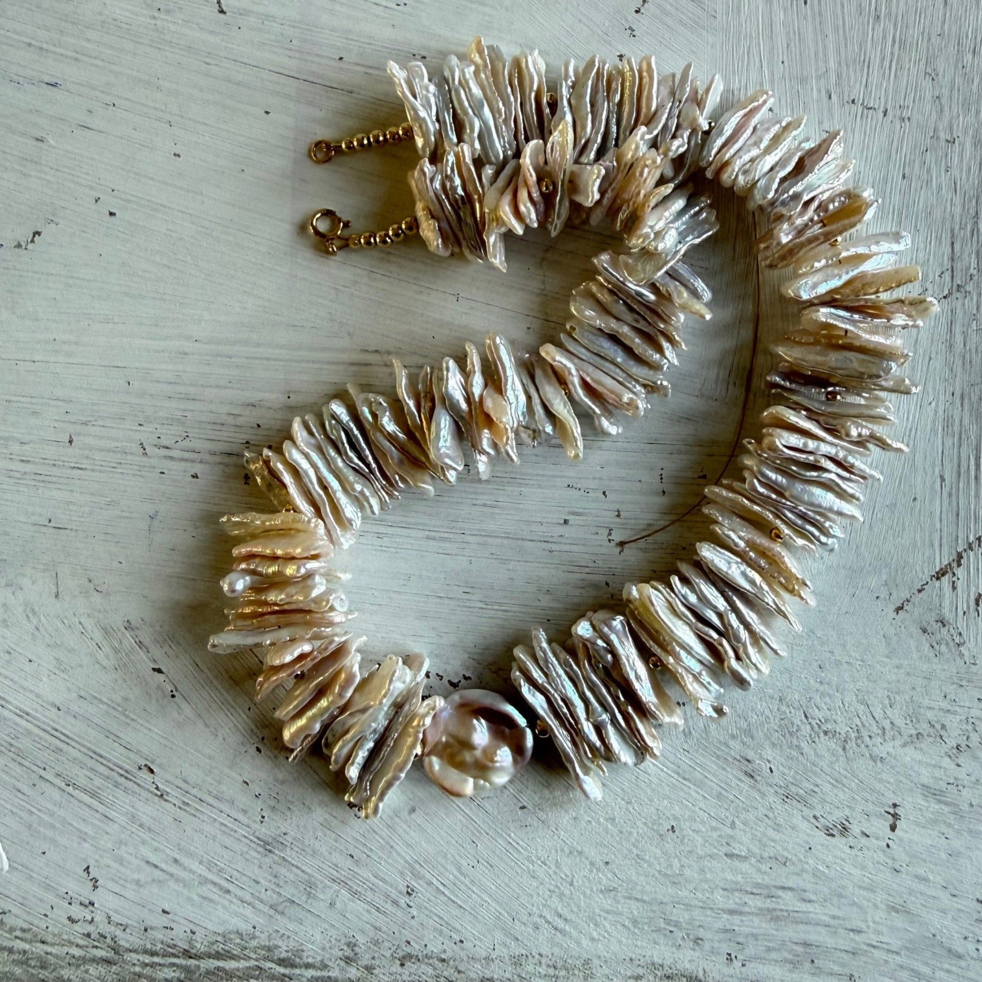 De Biwa parels hebben een enorme luster (glans), die moeilijk te vangen is op een foto.